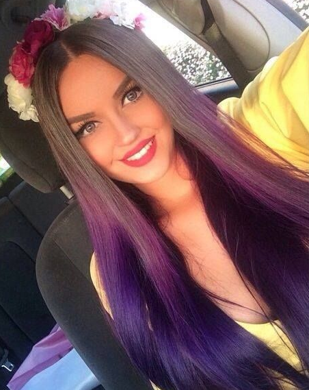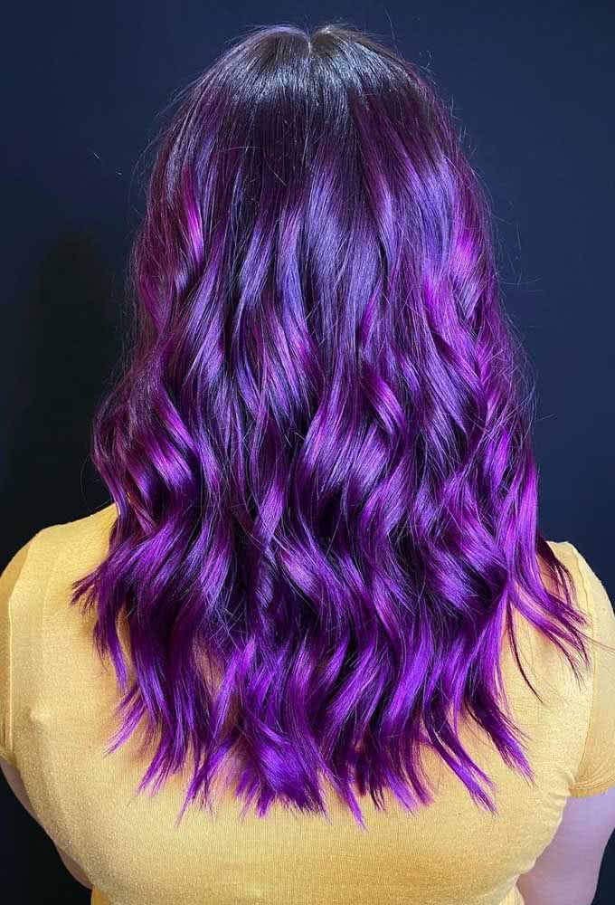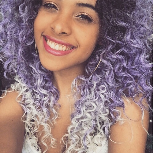 - Os cabelos claros recebem melhor cores como o roxo. Se você tem cabelos castanhos ou preto é aconselhável descolorir os fios para atingir o resultado desejado.