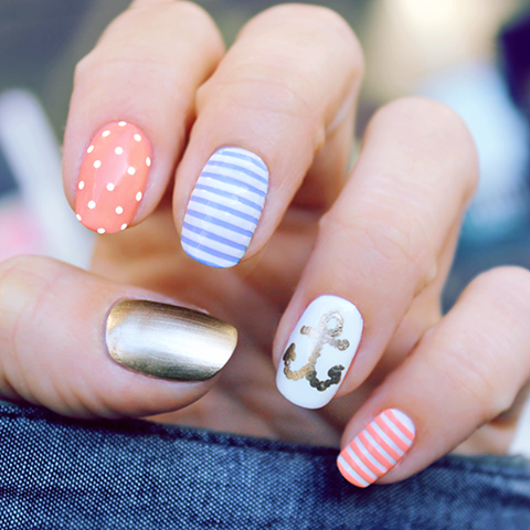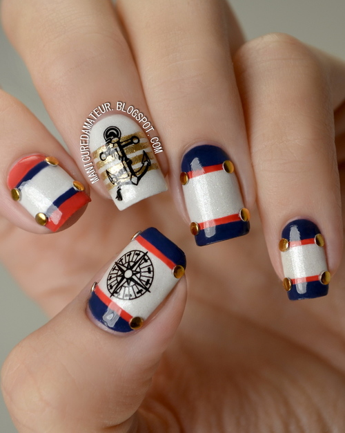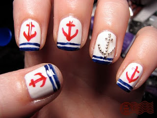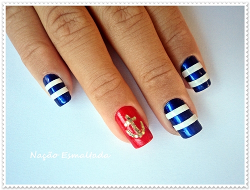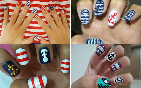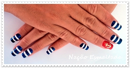 Em tudo que é relacionado às unhas é preciso ter muita criatividade, pois a cada dia novos modelos de decoração vão surgindo e exigindo maior perfeição e muita precisão para fazer os detalhes conforme eles são e proporcionar o efeito desejado nas unhas. Os motivos mais usados nas unhas náuticas são ancoras, listras, ondas, peixes, leme, em fim  o que não falta é opção. Outro item que também é muito utilizado na decoração das unhas são os acessórios como pedras coloridas que dão requinte e muito charme, você pode escolher as cores que combinam com a decoração e aplicar nas unhas com o esmalte ainda molhado.