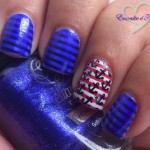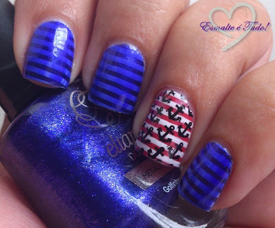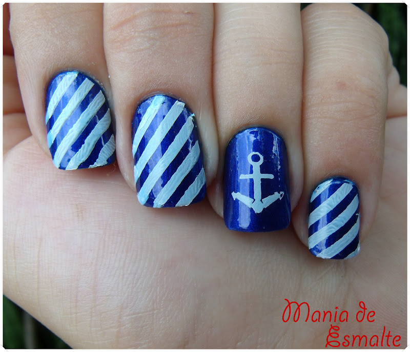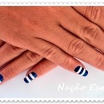 – Faça listras horizontais com o esmalte azul marinho. Espere secar;