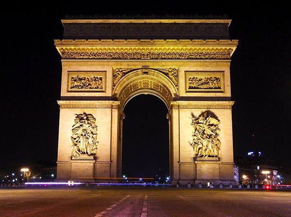 Arco do Triunfo – O Arco do Triunfo foi mandado construir em 1806 por Napoleão Bonaparte para comemoração das suas vitórias militares. Fica situado na Praça Charles de Gaulle, na mais famosa avenida de França, e até talvez, do mundo, a avenida Champs Élysées. Nesta fantástica obra de arquitetura, símbolo do patriotismo e orgulho francês, encontra-se o túmulo em homenagem ao soldado desconhecido e gravados os nomes dos mais importantes militares franceses, assim como das localidades onde travaram as principais batalhas.
