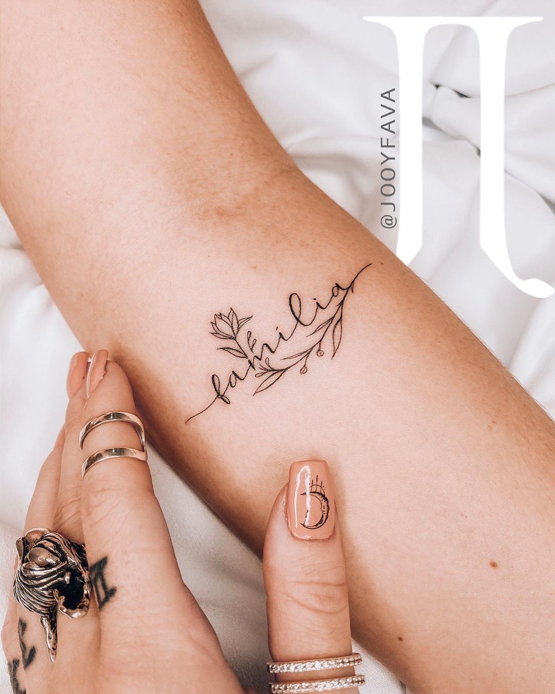 Muitas pessoas também acabam fazendo pequenas tatuagens com números da sorte ou datas importantes, mas para além dos símbolos mais comuns nas pequenas tatuagens femininas, pode sempre fazer um símbolo que simbolize algo muito importante para você ou um passatempo, por exemplo: uma nota musical, livro aberto, pegada de animal, entre outros; e pode ainda escolher apenas uma palavra que signifique algo forte para si e de forma bonita.