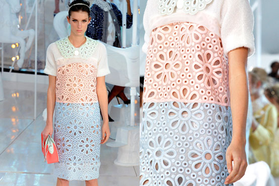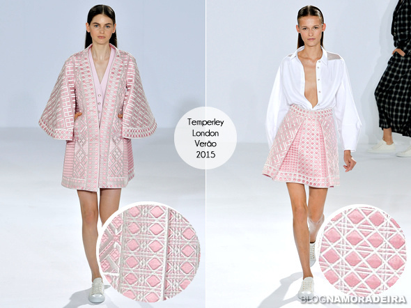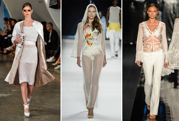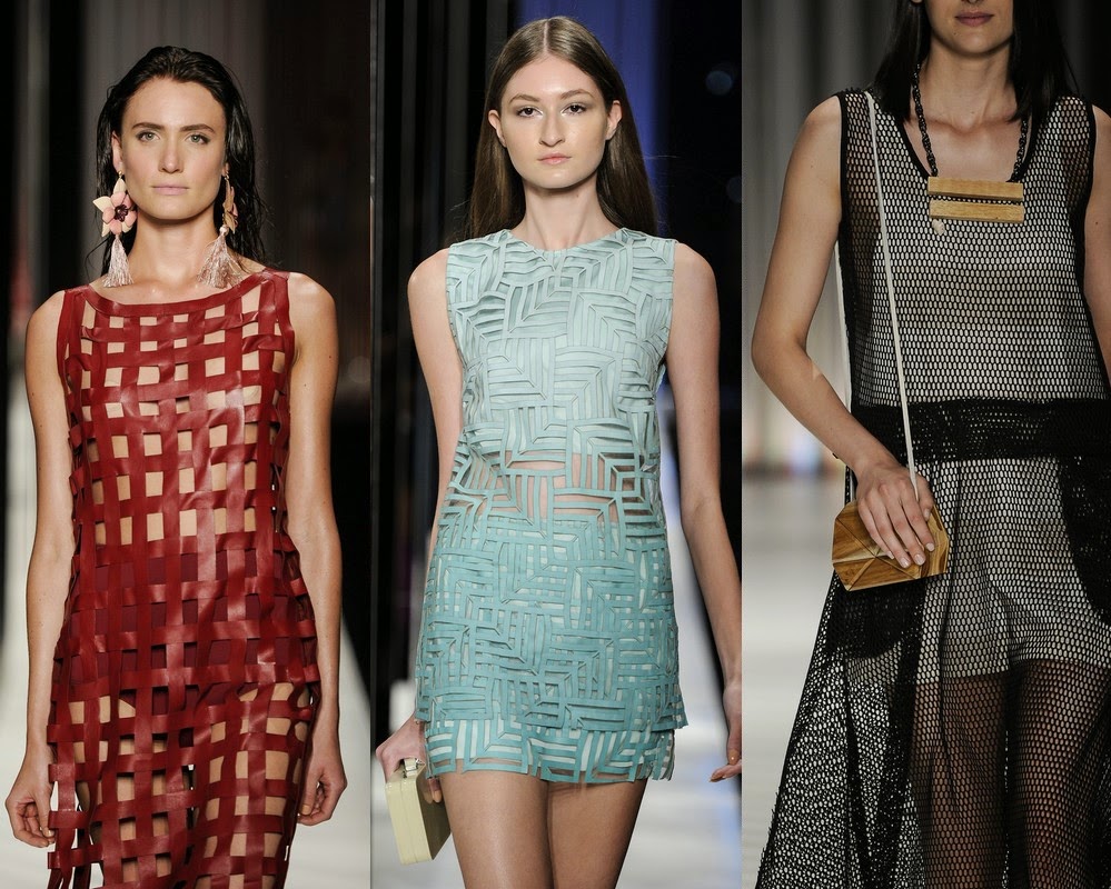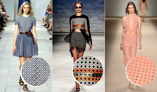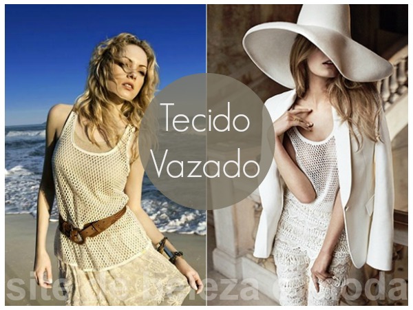 Seguindo a ideia de mostrar a pele, mas sem mostrar demais, os tecidos tramados são tendência no verão que está chegando. Seja trabalhado, com trama, vazado ou com recortes, o efeito de entrever a pele sem revelar demais vai trazer um toque feminino, lembrando um pouco o artesanal.