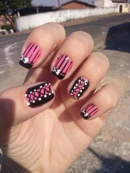 Está pronta a decoração. Viram como é fácil fazer a nail art? Não tem mistério qualquer pessoa pode fazer. Você também pode escolher as cores conforme a sua preferência ou pedir para sua manicure que faça para você.