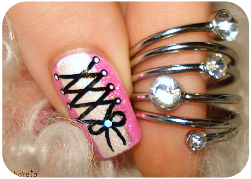 As decorações com espartilho podem variar conforme o modelo e as cores. O mais legal é que você pode fazer com as cores que desejar para combinar com os mais variados look e maquiagens. A maneira de fazer o espartilho nas unhas é muito fácil basta ter mão firme, as cores de esmaltes desejadas e o boleador para decorações em unhas.