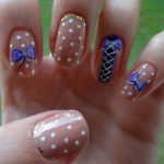 – Com o boleador de unhas faça três bolinhas de cada lado da meia lua;