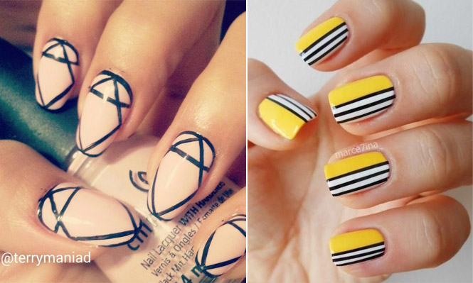 – Modelos com listras -Se você procura algo pratico e bonito para se fazer, experimente os modelos com listras. Escolha e aplique um esmalte nas cores do seu agrado após pegue um esmalte em uma outra cor e traceje linhas diagonais.