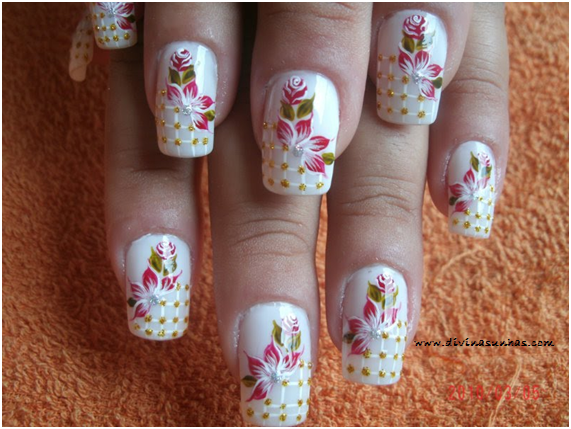 – As unhas decoradas com flores também são aquelas que sempre continuam em alta, no entanto, hoje em dia existem alguns modelos diferenciados.