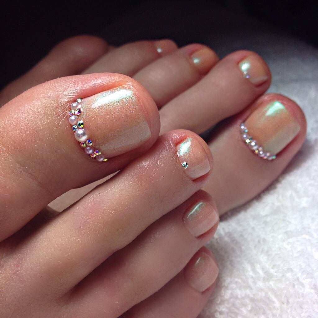Unhas dos pés decoradas com pedras
